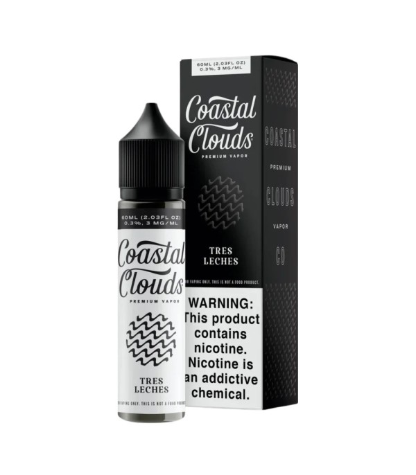 Coastal Clouds Tres Leches, üç sütlü tatlı esintili aromaları öne çıkaran 60 ml’lik premium freebase e-likittir. 70 VG / 30 PG oranı ile kremsi, tatlı ve dolgun bir lezzet deneyimi sunar.