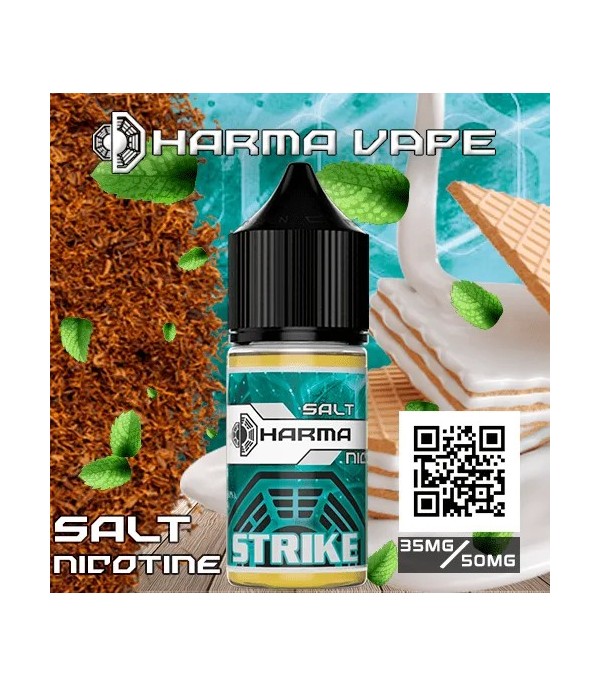 Dharma Strike Salt Likit, 3 farklı tütün, krema, gofret ve hafif mentol aromalarının dengeli birleşimi ile zengin ve ferahlatıcı bir vaping deneyimi sunar. 30 ml şişe, 35/50 mg nikotin seçenekleri ve pod mod cihazlarla uyumlu premium formül ile kullanıcı dostudur.