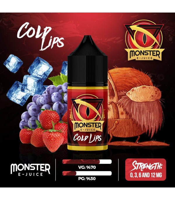 Monster Cold Lips 30ml Likit: 3 üzüm çeşidi, çilek ve yoğun buz serinliğinin mükemmel uyumu. %70 VG / %30 PG ile güçlü aroma ve bol buhar deneyimi sunar. Ferahlatıcı ve meyveli bu e-likit ile canlandırıcı bir içim yaşayın. Hemen keşfedin!